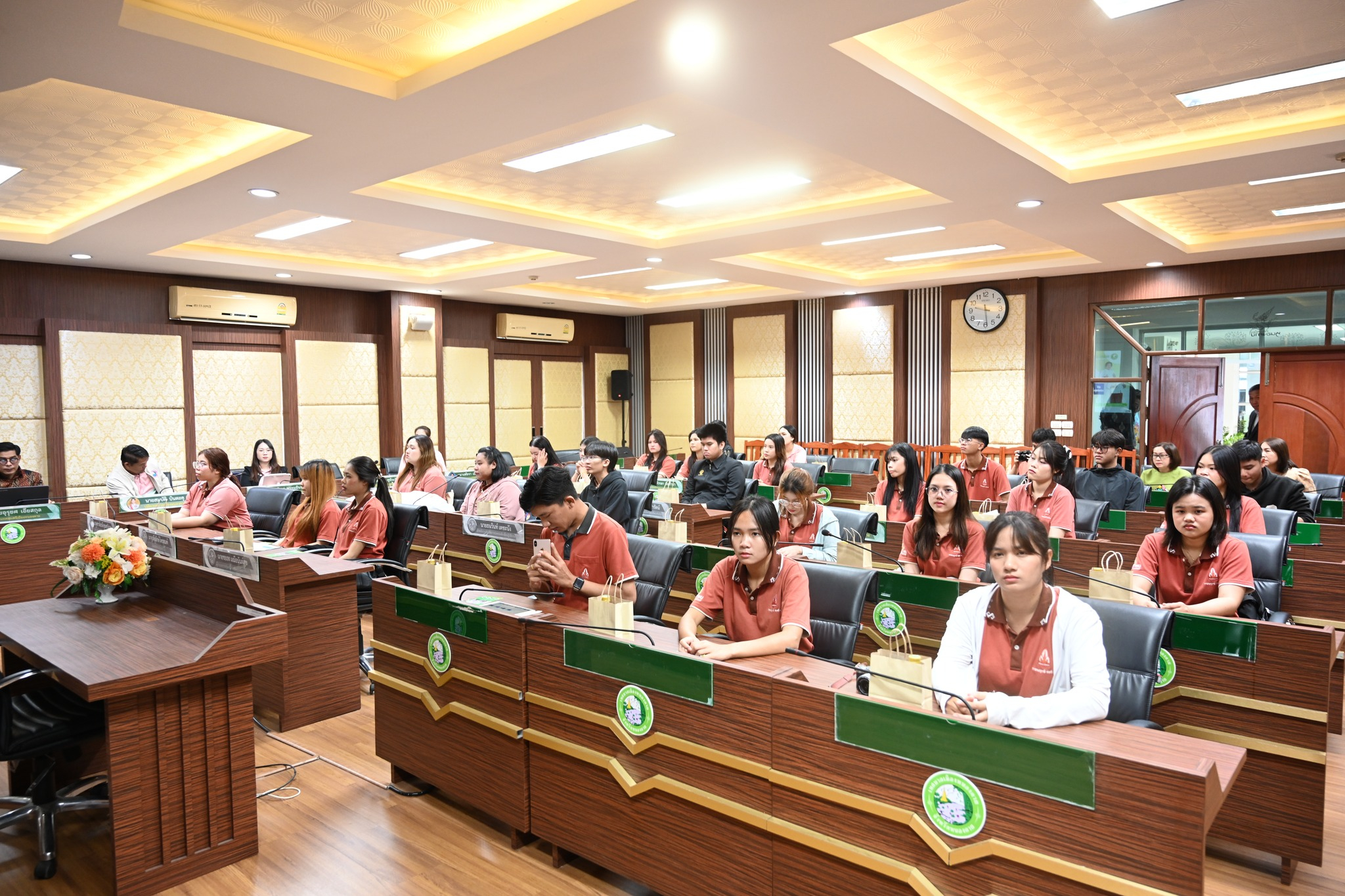 ในภาคเช้า เวลา 09.00 น. นายอุรุยศ เอียสกุล นายกเทศมนตรีเมืองหนองคาย มอบหมายให้ นายการุณย์ เสนจันทร์ฒิไชย ที่ปรึกษานายกเทศมนตรีเมืองหนองคาย พร้อมด้วยหัวหน้าส่วนราชการ และเจ้าหน้าที่ ให้การต้อนรับนักศึกษาโดยได้รับเกียรติจาก นายสมบัติ บินตะคุ ปลัดเทศบาลเมืองหนองคาย เป็นวิทยากรบรรยายในหัวข้อ “การคลังเทศบาล” และเยี่ยมชมหน่วยงาน ณ ห้องประชุมสภาเทศบาลเมืองหนองคาย ชั้น 7 เทศบาลเมืองหนองคาย จังหวัดหนองคาย