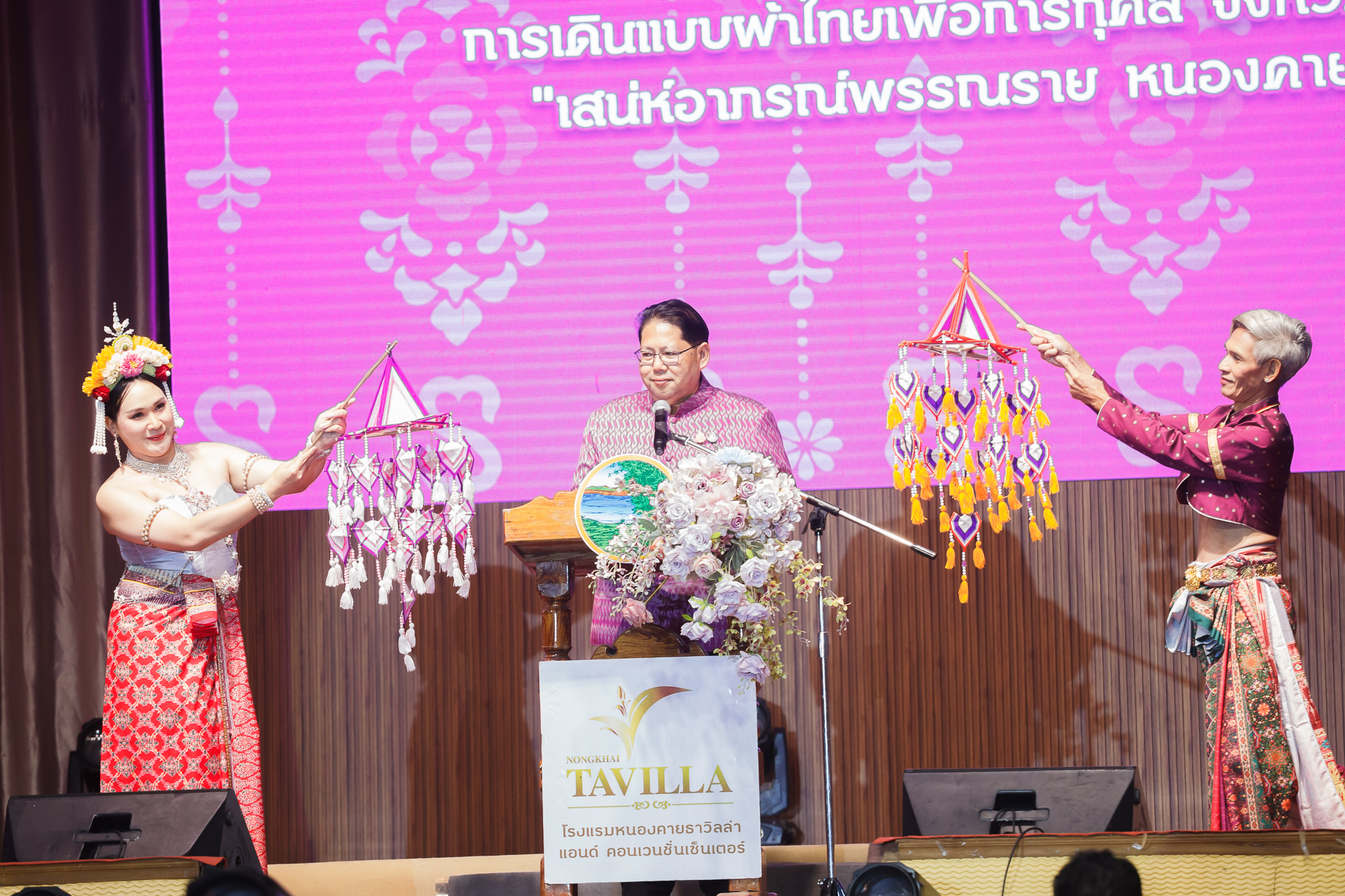 วันที่ 29 พฤษภาคม 2568 ณ โรงแรมหนองคายธาวิลล่า อำเภอเมืองหนองคาย จังหวัดหนองคายจังหวัดหนองคาย ผู้ช่วยศาสตราจารย์ ดร.สุนทรี บูชิตชน คณบดีคณะสหวิทยาการ พร้อมคณะผู้บริหาร บุคลากร และตัวแทนนักศึกษาเข้าร่วมงานเดินแบบผ้าไทยเพื่อการกุศล ประจำปี 2568 โดยมี นายสมภพ สมิตะสิริ ผู้ว่าราชการจังหวัดหนองคาย เป็นประธานกล่าวเปิดงาน ในการจัดงานครั้งนี้มีวัตถุประสงค์เพื่อเป็นการสืบสานภูมิปัญญาผ้าไทย ตามวิถีที่เป็นเอกลักษณ์ประจำถิ่น ตามพระดำริ "ผ้าไทยใส่ให้สนุก" ตลอดทั้งเพื่อเป็นการเชิดชูเกียรติแก่ผู้สืบทอดภูมิปัญญาผ้าไทย โดยมีรูปแบบการจัดงานภายใต้การรณรงค์สวมใส่ผ้าไทย “เสน่ห์อาภรณ์พรรณราย หนองคาย มนต์แห่งลุ่มน้ำโขง” เพื่อเป็นการอนุรักษ์และสืบสานภูมิปัญญาการผลิตผ้าพื้นถิ่น ของคนไทยให้คงอยู่สืบไป สร้างรายได้กลับเข้าสู่ชุมชน กระตุ้น ปลุกกระแสผ้าไทย พัฒนาผ้าไทยให้ทันสมัยสู่สากลเป็นที่นิยมในทุกเพศ ทุกวัยและทุกโอกาส