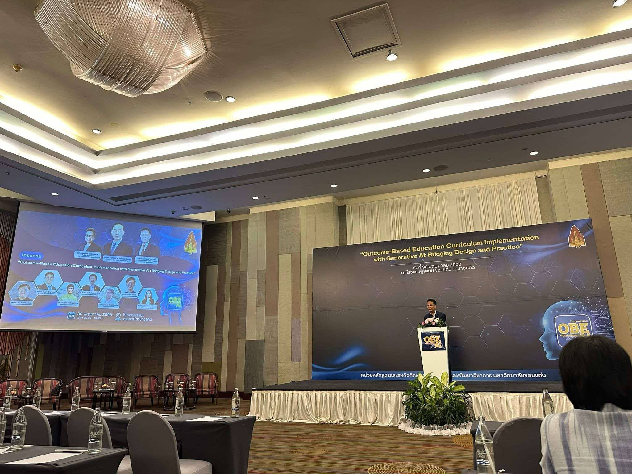 เมื่อวันที่ 30 พฤษภาคม 2568 ณ โรงแรมพูลแมน ขอนแก่น ราชาออคิด สำนักบริหารและพัฒนาวิชาการ มหาวิทยาลัยขอนแก่น ได้จัดโครงการสัมมนาเชิงปฏิบัติการ "Outcome-Based Education Curriculum Implementation with Generative AI: Bridging Design and Practice" โดยได้รับเกียรติจาก รศ.นพ.ชาญชัย พานทองวิริยะกุล อธิการบดีมหาวิทยาลัยขอนแก่น เป็นประธานในพิธีเปิด และ ผศ.ดร.เด่นพงษ์ สุดภักดี รองอธิการบดีฝ่ายการศึกษาและดิจิทัล กล่าวรายงานถึงความสำคัญและวัตถุประสงค์ของโครงการ