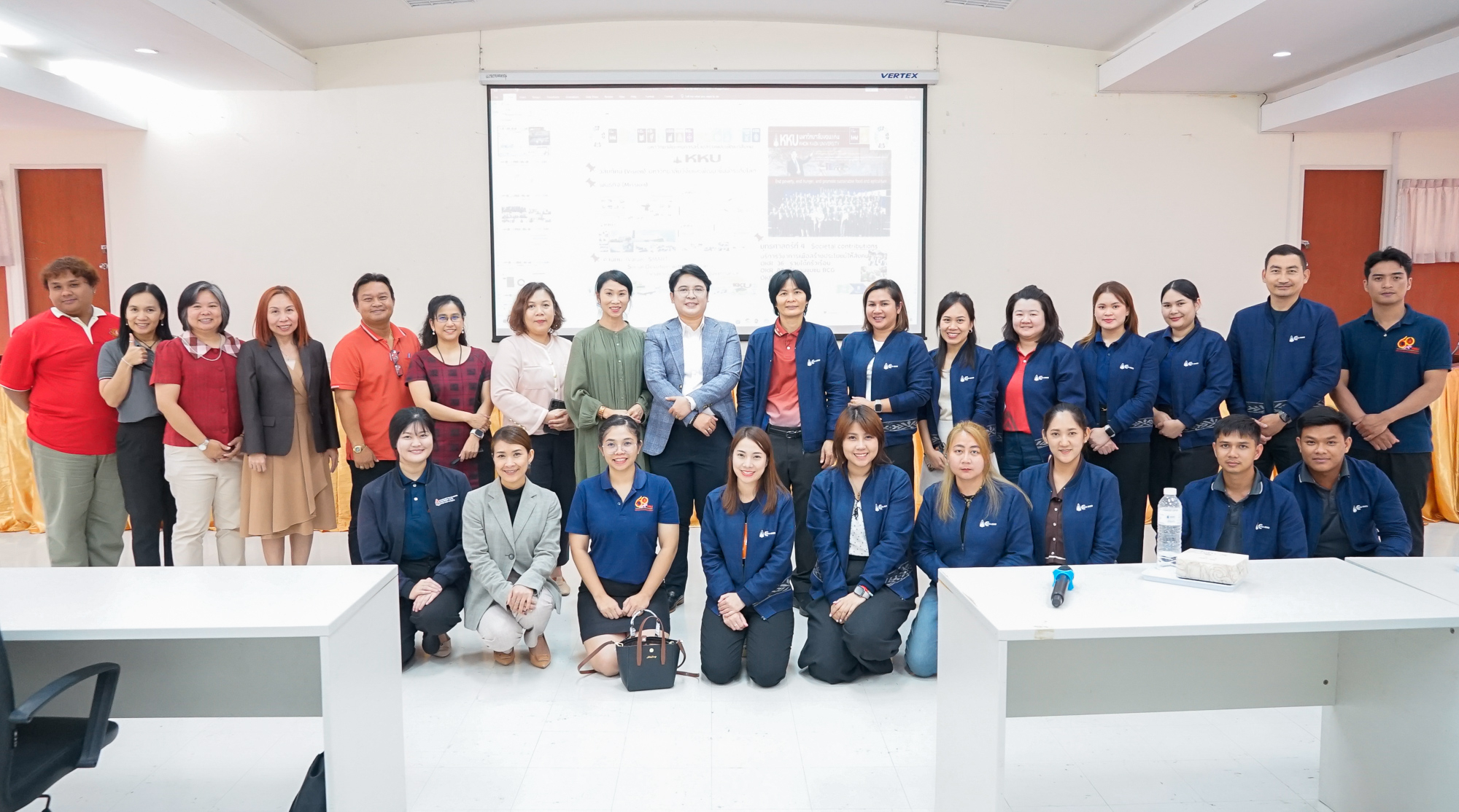 วันที่ 1 กรกฎาคม 2568 ณ ห้องประชุม NK1407 อาคารสำนักงานบริหาร ผู้ช่วยศาสตราจารย์ ดร.สุนทรี บูชิตชน คณบดีคณะสหวิทยาการ พร้อมคณะผู้บริหาร อาจารย์ และบุคลากร ให้การต้อนรับ ศาสตราจารย์ ดร.ธิดารัตน์ บุญมาศ รองอธิการบดีฝ่ายวิสาหกิจและสังคมยั่งยืน , นางสาวสุนิภา ไสวเงิน ผู้อำนวยการสำนักงานอธิการบดี , นางสาววราภรณ์ ผิวพรรณงาม รองผู้อำนวยการศูนย์ส่งเสริมวิสาหกิจและสังคมยั่งยืน และบุคลากรจาก ศูนย์ส่งเสริมวิสาหกิจและสังคมยั่งยืน มหาวิทยาลัยขอนแก่น ในการมอบนโยบายและแลกเปลี่ยนแนวทางการดำเนินงานด้านการสนับสนุนและเสริมสร้างความเข้มแข็งกับชุมชน และสังคมเพื่อการพัฒนาอย่างยั่งยืน ซึ่งเป็นการสร้างความร่วมมือในการขับเคลื่อนเป้าหมายการพัฒนาชุมชนและสังคมยั่งยืนตามแนวทาง SDGs