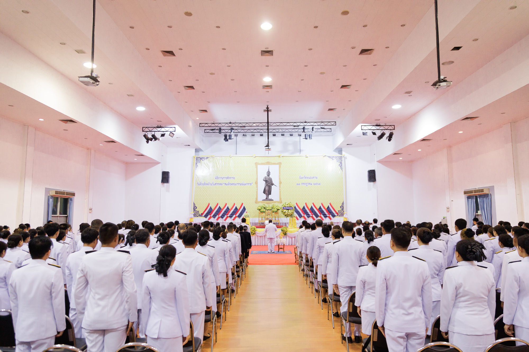 วันที่ 11 กรกฎาคม 2568 ณ หอประชุมประจักษศิลปาคม ศาลากลางจังหวัดหนองคาย คณะสหวิทยาการ มหาวิทยาลัยขอนแก่น นำโดย อาจารย์จักรวาล กลีบบัว รองคณบดีคณะสหวิทยาการ พร้อมบุคลากร เข้าร่วมพิธีวางพวงมาลาและถวายราชสดุดี เนื่องในวันที่ระลึกคล้ายวันสวรรคต “สมเด็จพระนารายณ์มหาราช” ประจำปีพุทธศักราช 2568 ภายในพิธี นายสมภพ สมิตะสิริ ผู้ว่าราชการจังหวัดหนองคาย เป็นประธานในพิธี วางพานพุ่มถวายราชสักการะหน้าพระบรมฉายาลักษณ์ และนำกล่าวถวายราชสดุดีเฉลิมพระเกียรติ พร้อมด้วยหัวหน้าส่วนราชการ ตุลาการ อัยการ ข้าราชการพลเรือน ทหาร ตำรวจ ผู้บริหารองค์กรปกครองส่วนท้องถิ่น และสมาชิกองค์กรต่าง ๆ ร่วมพิธี