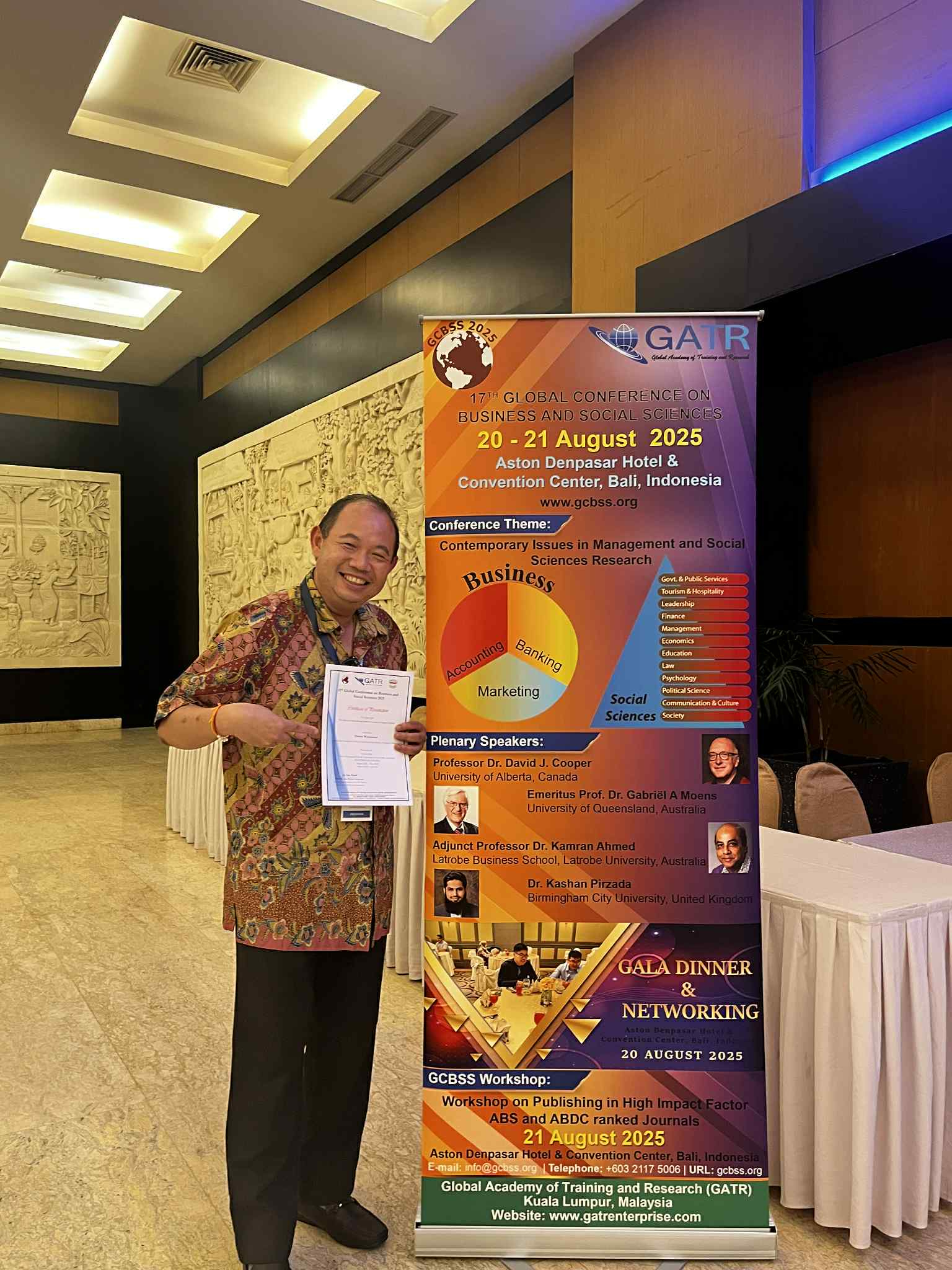 เมื่อวันที่ 21 สิงหาคม 2568 คณาจารย์จากคณะสหวิทยาการ มหาวิทยาลัยขอนแก่น เข้าร่วมและนำเสนอ บทความวิจัย ในการประชุมวิชาการระดับนานาชาติ IICMSSR 2025 (INTERNATIONAL CONFERENCE ON MANAGEMENT AND SOCIAL SCIENCES RESEARCH 2025) ณ ASTON DENPASAR HOTEL AND CONVENTION CENTER, BALI INDONESIA โดย รองศาสตราจารย์ ดร.ธเนศ วัฒนกูลและอาจารย์ปรัชญา หมื่นอภัย