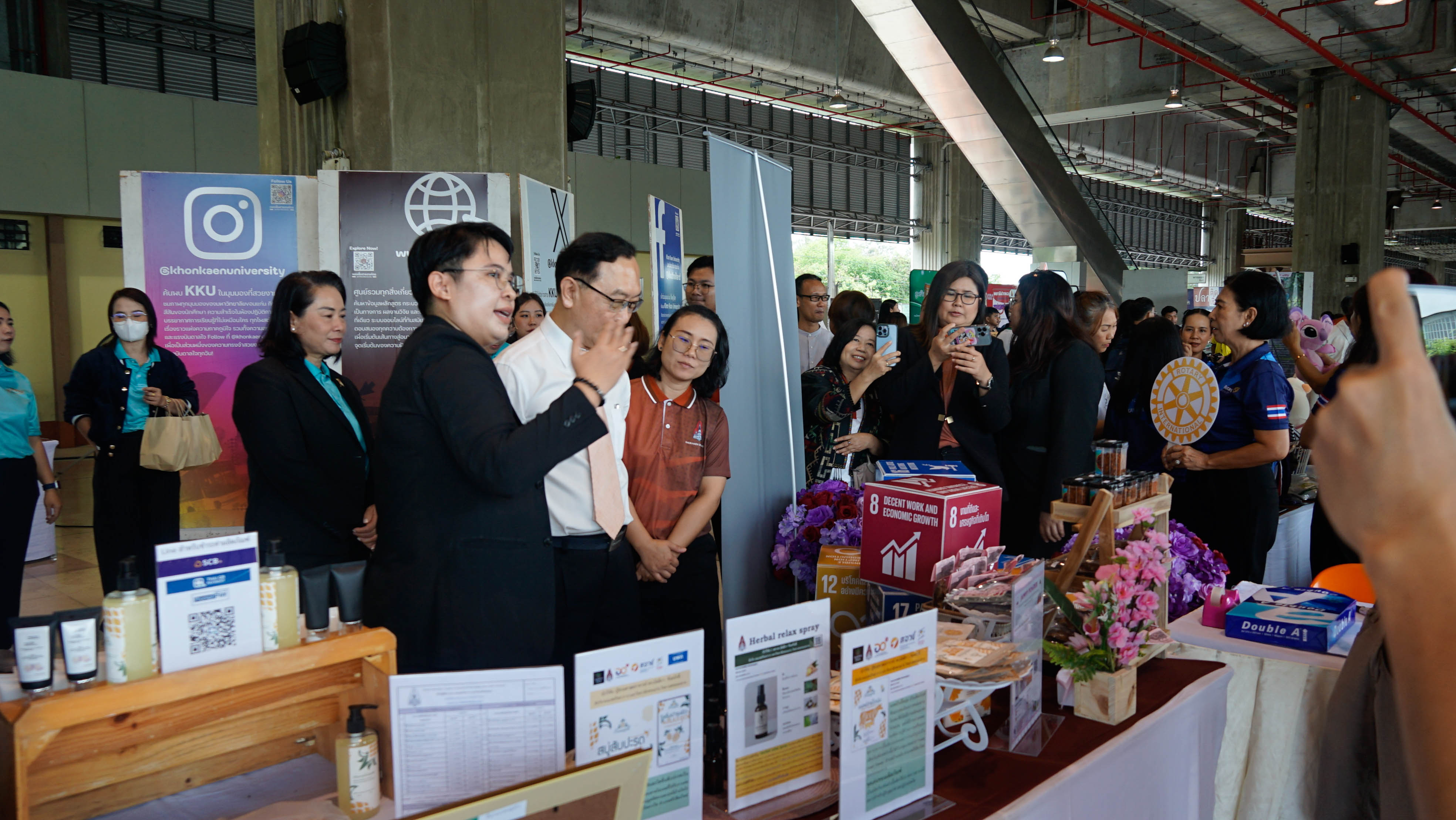 เมื่อวันที่ 5 กันยายน 2568 ที่ผ่านมา ณ บริเวณลานชั้น 1 สถานีรถไฟขอนแก่น รศ.ดร.วัลลภา วงศ์ศีลธรรม รองคณบดีคณะสหวิทยาการ ได้นำทีมบุคลากรและนักศึกษาเข้าร่วมกิจกรรม "มหกรรมมหาวิทยาลัยขอนแก่นบริการชุมชน" ซึ่งจัดขึ้นภายใต้โครงการบริการวิชาการเพื่อสร้างประโยชน์ให้สังคม (Societal Contributions)