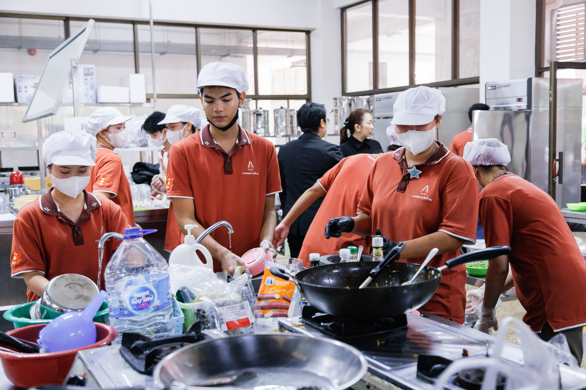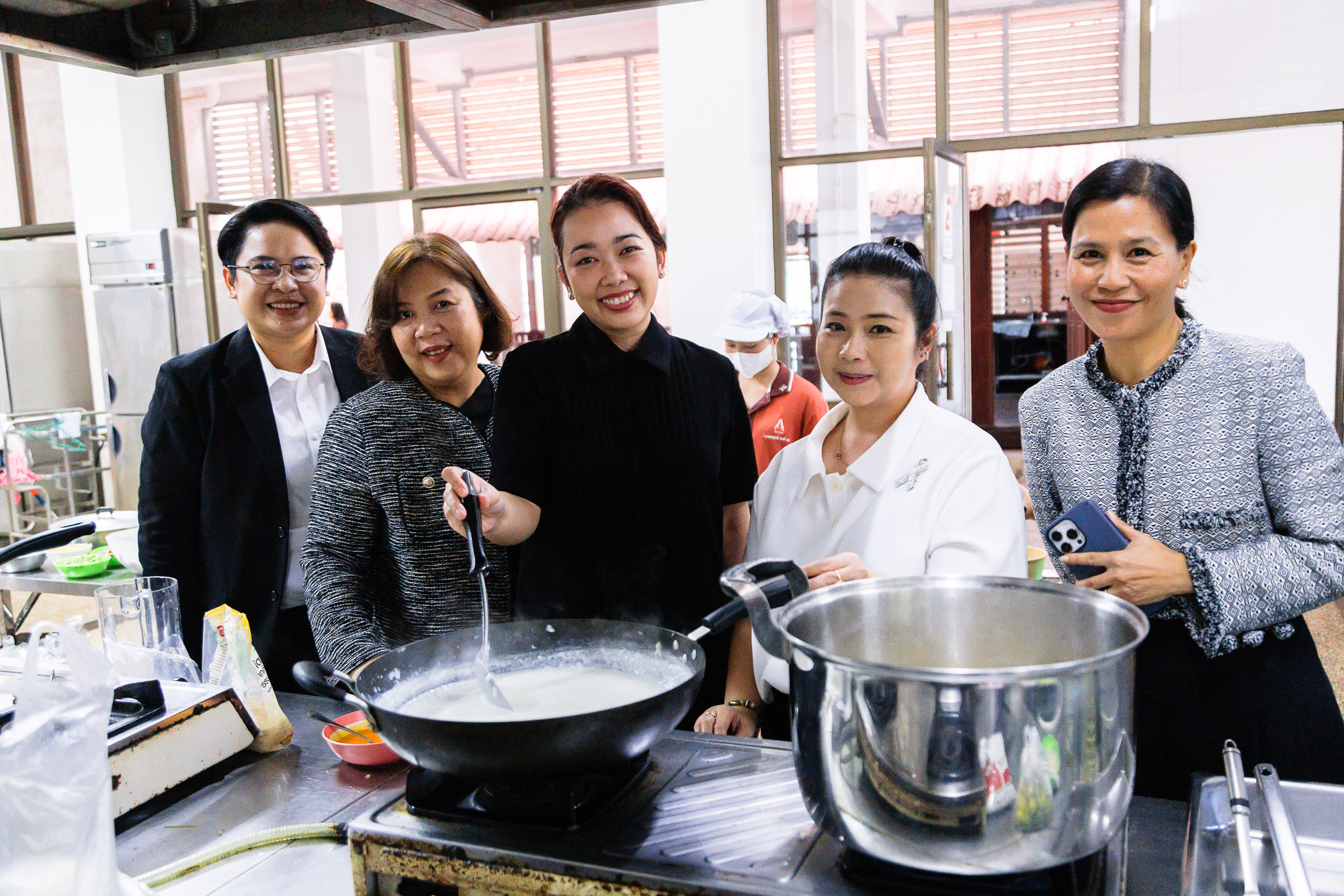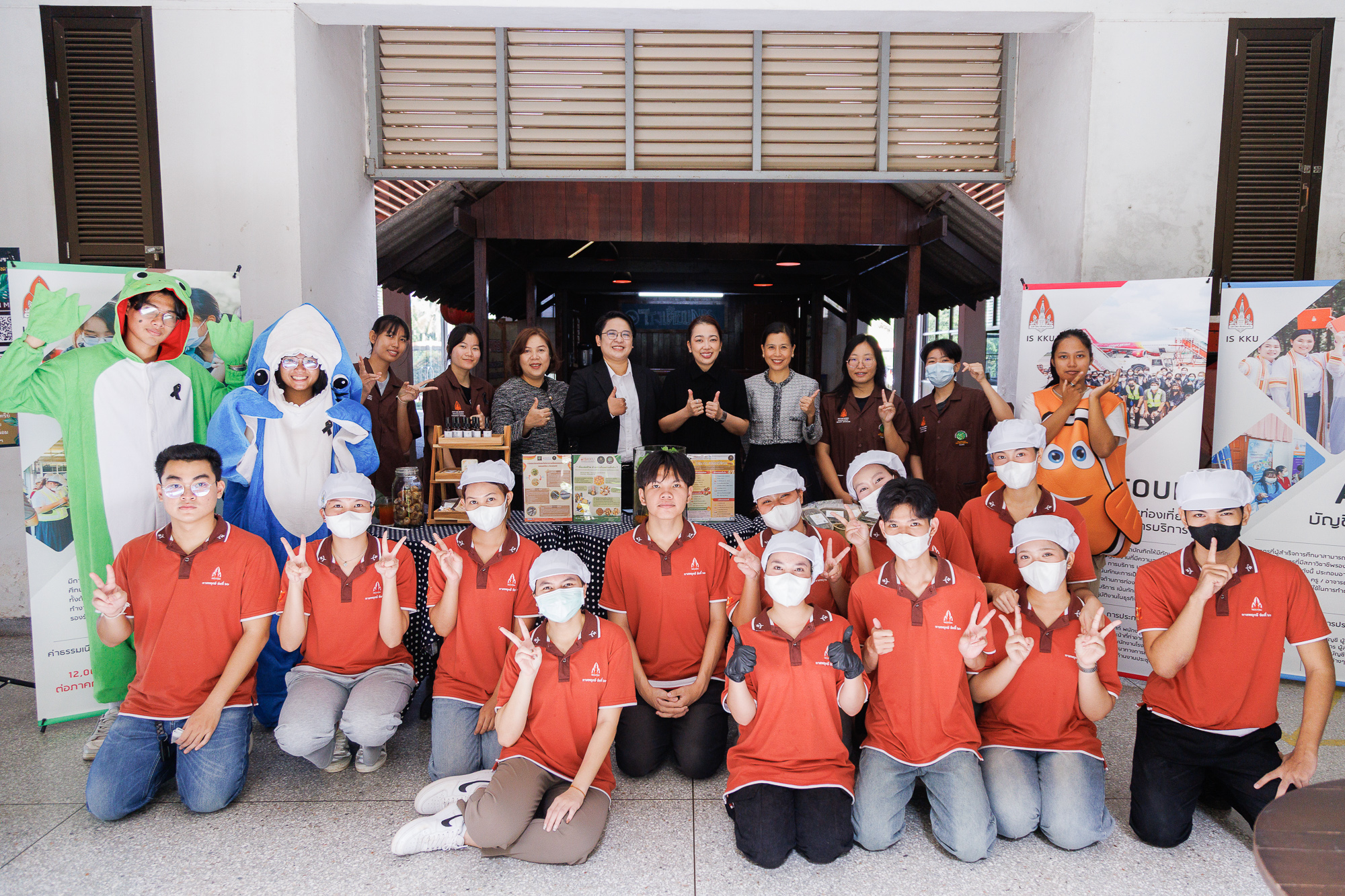 วันที่ 27 ตุลาคม 2568 ผู้ช่วยศาสตราจารย์ ดร.สุนทรี บูชิตชน คณบดีคณะสหวิทยาการ พร้อมผู้บริหารร่วมเยี่ยมชมนักศึกษา ในกิจกรรมฝึกปฏิบัติขายอาหาร “Story of Golden Snails” จากผลิตภัณฑ์ชุมชน โดยมี ผู้ช่วยศาสตราจารย์ ดร.จตุราพร สีหาบุตร และ ผู้ช่วยศาสตราจารย์ ดร.มัลลิกา จันทรังษี เป็นผู้ดำเนินกิจกรรม โดยจัดขึ้นภายใต้แนวคิด Active Learning โดยได้รับแรงบันดาลใจจากการลงพื้นที่เรียนรู้ (Experimental Learning) ณ กลุ่มวิสาหกิจชุมชนหอยเชอรี่สีทอง จังหวัดหนองคาย จากโครงการการเพิ่มมูลค่าหอยเชอรี่สีทองด้วยการแปรรูปเป็นอาหารพื้นถิ่นที่มีมูลค่าใหม่ (หอยยอใบข่า) ซึ่งได้เปิดโอกาสให้นักศึกษาร่วมระดมความคิดต่อยอดแนวทางการสร้างมูลค่าเพิ่มให้ผลิตภัณฑ์ท้องถิ่น และทดลองพัฒนาเมนูอาหารเชิงสร้างสรรค์ (Product Innovation) จากวัตถุดิบ “หอยเชอรี่สีทอง” และดำเนินการขายอาหารเมนูจากหอยเชอรี่สสีทอง ได้แก่ สปาเก็ตตี้หอยเชอรี่สีทอง ผัดฉ่าหอยเชอรี่สีทอง ยำขนมจีนหอยเชอรี่สีทอง พร้อมเครื่องดื่ม และจำหน่ายในรูปแบบ Boxset