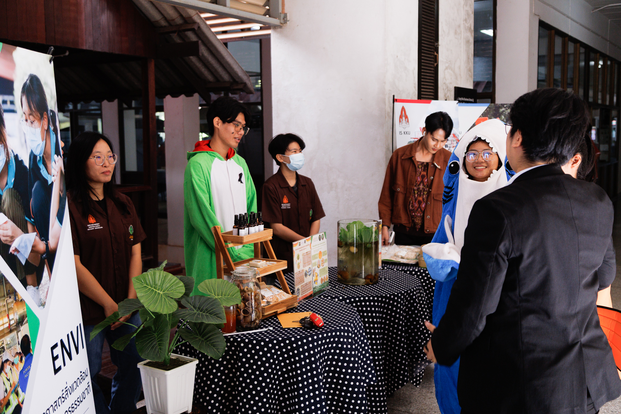 การบูรณาการข้ามศาสตร์ครั้งนี้ จัดขึ้นด้วยความมือของรายวิชาเศรษฐศาสตร์การท่องเที่ยว หลักสูตรนวัตกรรมการท่องเที่ยวและการบริการ และหลักสูตรวิทยาศาสตร์สิ่งแวดล้อมและทรัพยากรธรรมชาติ ซึ่งให้ความสำคัญกับการบูรณาการการเรียนรู้ข้ามศาสตร์ โดยนักศึกษาชั้นปีที่ 2 จากหลักสูตรวิทยาศาสตร์สิ่งแวดล้อมและทรัพยากรธรรมชาติ ได้ร่วมออกบูธนิทรรศการให้ความรู้เกี่ยวกับ “หอยเชอรี่สีทอง” เพื่อเสริมสร้างความเข้าใจและมีการจัดจำหน่ายผลิตภัณฑ์จากหอยเชอรี่สีทองของกลุ่มวิสาหกิจชุมชน นิทรรศการให้ความรู้เล็ก ๆ สร้างสีสันและบรรยากาศแห่งการเรียนรู้อย่างสร้างสรรค์