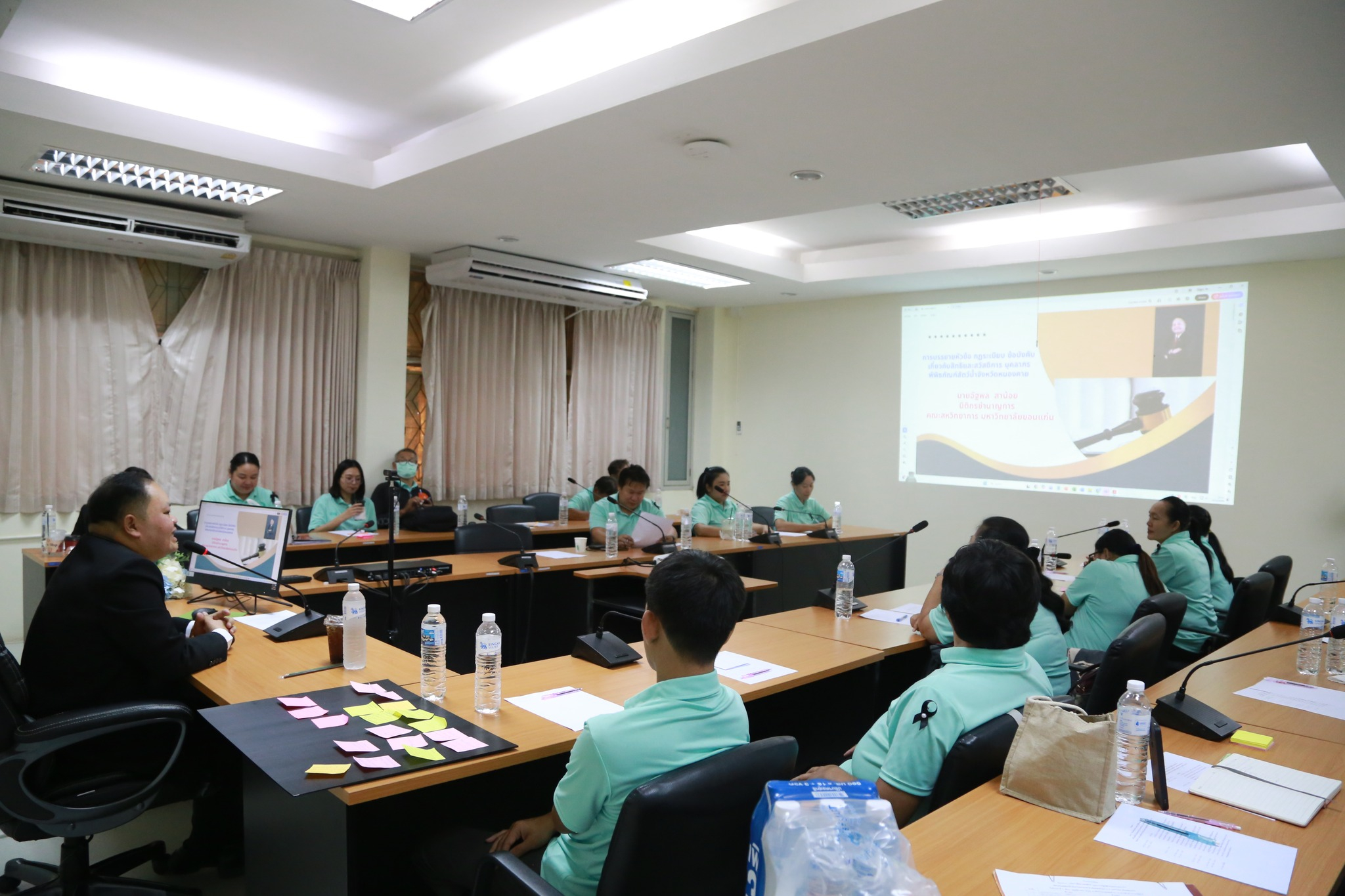 ในช่วงถัดมา นายอัฐพล สาน้อย นิติกรชํานาญการ ได้บรรยายในเรื่อง "สิทธิและสวัสดิการ รวมถึงการใช้สิทธิและบทบาทของผู้ปฏิบัติงานแต่ละส่วนงาน" เพื่อสร้างความรู้ความเข้าใจด้านสิทธิและส่งเสริมทัศนคติเชิงบวกในการทำงาน