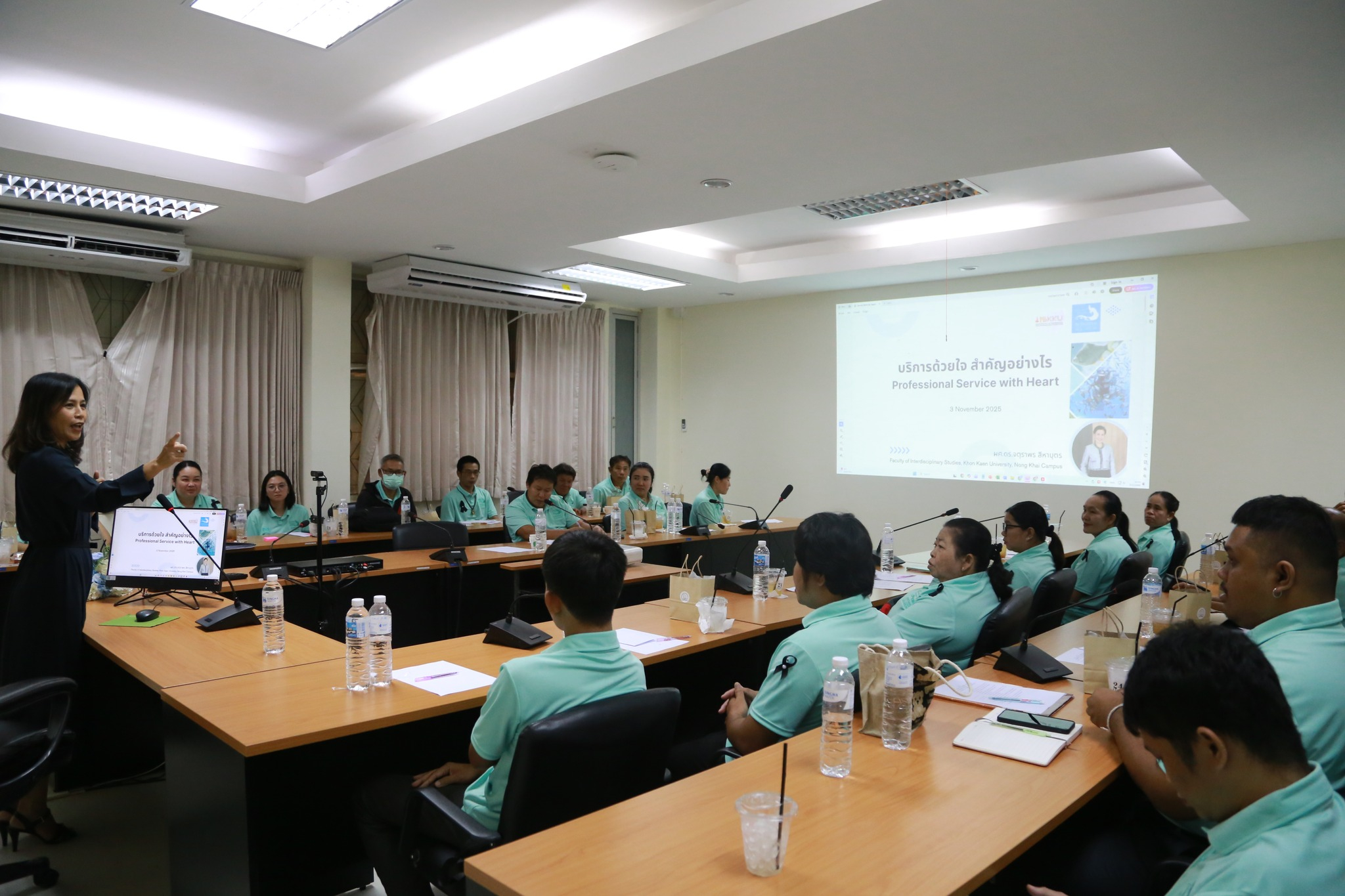 ปิดท้ายด้วยการบรรยายจาก ผศ.ดร.จตุราพร สิหาบุตร ในหัวข้อ "การพัฒนาทักษะด้านการบริการและ Mindset ด้านการบริการ" เพื่อปลูกฝังจิตสำนึกและทักษะที่จำเป็นในการให้บริการที่เป็นเลิศแก่ผู้มาใช้บริการ