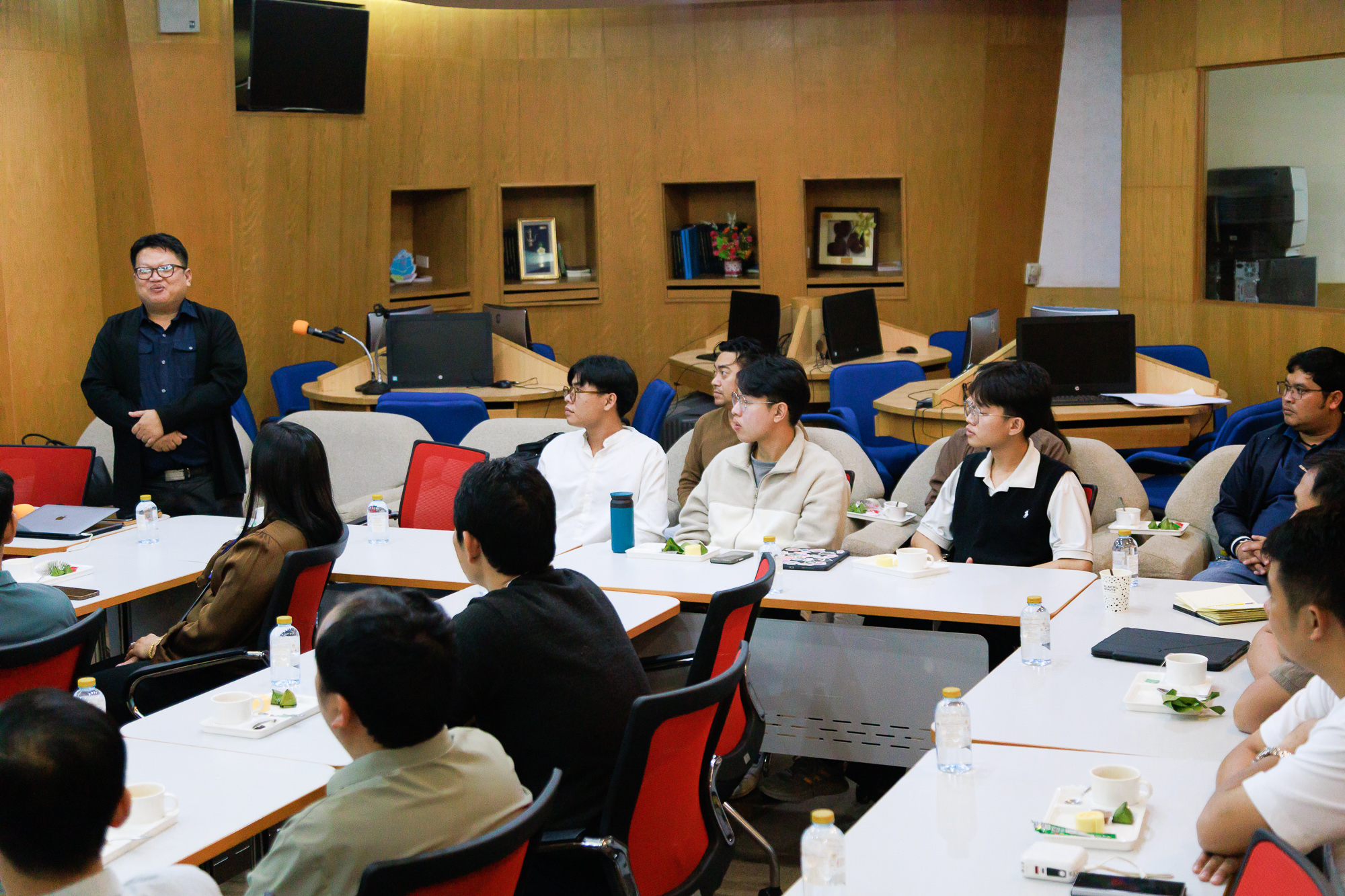 วันที่ 29 พฤศจิกายน 2568 ณ ห้องตลาดหลักทรัพย์ อาคารเรียนรวมและปฏิบัติการ 1 ผู้ช่วยศาสตราจารย์ ดร.กริช แรงสูงเนิน และ ผู้ช่วยศาสตราจารย์ ดร.จตุราพร สีหาบุตร อาจารย์สาขาวิชาบริหารธุรกิจ ให้การต้อนรับ คณะเศรษฐศาสตร์และการท่องเที่ยว มหาวิทยาลัยสุภานุวงศ์ สาธารณรัฐประชาธิปไตยประชาชนลาว นำโดย Dr. Thipphavanh DUANGVILAYKEO Head of Business Management Department, Faculty of Economics and Tourism พร้อมอาจารย์และนักศึกษา ในการเยี่ยมชมคณะสหวิทยาการครั้งนี้ มีวัตถุประสงค์เพื่อแลกเปลี่ยนทางวิชาการโดยมุ่งเน้นที่หลักสูตรบริหารธุรกิจ และหารือในเรื่องของการจัดการศึกษาและการพัฒนาหลักสูตรร่วมกัน