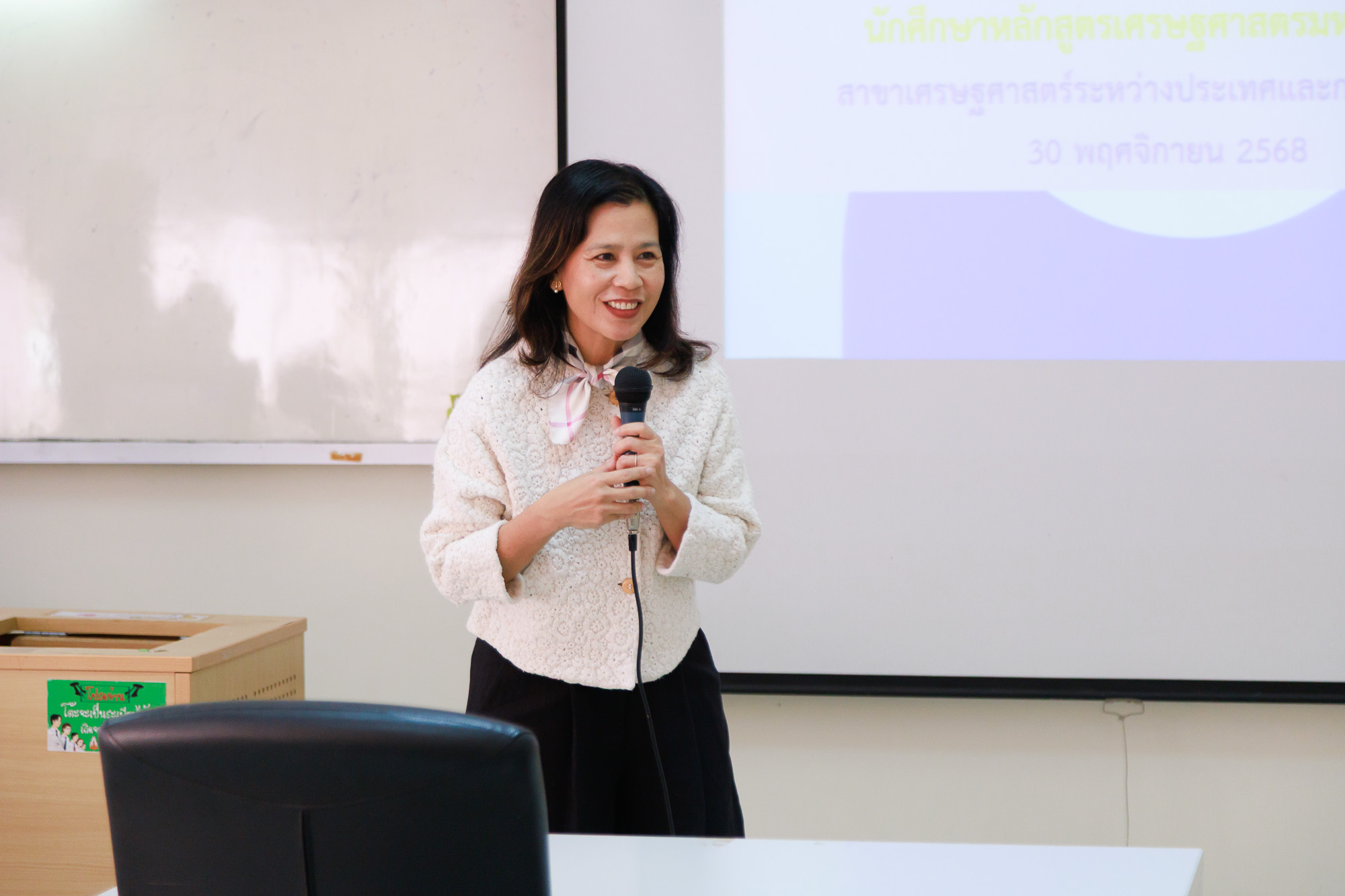 วันที่ 30 พฤศจิกายน 2568 ณ ห้อง NK1406 อาคารสำนักงานบริหาร คณะสหวิทยาการ มหาวิทยาลัยขอนแก่น รองศาสตราจารย์ ดร.ธเนศ วัฒนกูล หัวหน้าสาขาวิชาสังคมศาสตร์ และประธานหลักสูตรเศรษฐศาสตรมหาบัณฑิต สาขาเศรษฐศาสตร์ระหว่างประเทศและการท่องเที่ยว พร้อมอาจารย์ในหลักสูตรได้แก่ รองศาสตราจารย์ ดร.ศักรินทร์ นนทพจน์ , ผู้ช่วยศาสตราจารย์ ดร.จตุราพร สีหาบุตร และ ดร.สุกัลญา ศิริมาตร์ ให้การต้อนรับนักศึกษาใหม่ในโครงการปฐมนิเทศและเตรียมความพร้อมนักศึกษา โดยมีวัตถุประสงค์เพื่อปรับพื้นฐานและเตรียมความพร้อมสำหรับนักศึกษา และเพื่อแลกเปลี่ยนเรียนรู้แนวทางในการเรียนระหว่างคณาจารย์และนักศึกษา