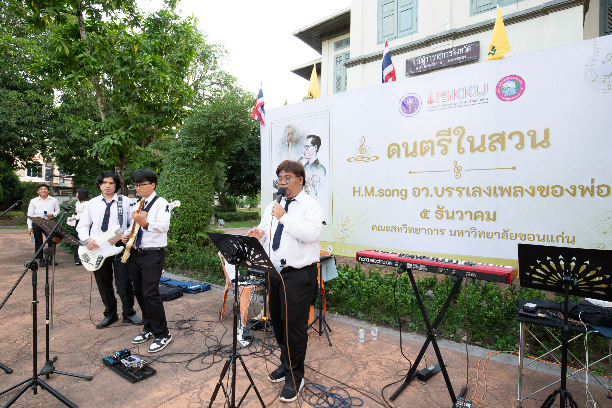 วันที่ 5 ธันวาคม 2568 คณะสหวิทยาการ มหาวิทยาลัยขอนแก่น ร่วมกับ เทศบาลเมืองหนองคาย จัดแสดงดนตรีบทเพลงพระราชนิพนธ์ "ดนตรีในสวน : H.M. Song อว.บรรเลงเพลงของพ่อ ประจำปี 2568" นำโดย อาจารย์ชาติภร เมืองโคตร มุงคุณแสน รองคณบดีคณะสหวิทยาการ พร้อมคณะผู้บริหาร บุคลากร นักศึกษา นักเรียน และประชาชนทั่วไป เข้าร่วมกิจกรรมดังกล่าว ณ จวนผู้ว่าราชการ (หลังเก่า) จังหวัดหนองคาย โดย กระทรวงการอุดมศึกษา วิทยาศาสตร์ วิจัยและนวัตกรรม ได้มีนโยบายให้สถาบันอุดมศึกษาในสังกัดนำพลังด้านดนตรีซึ่งเป็น เพื่อเทิดพระเกียรติและเป็นการน้อมรำลึกในพระมหากรุณาธิคุณพระบาทสมเด็จพระบรมชนกาธิเบศร มหาภูมิพลอดุลยเดชมหาราช บรมนาถบพิตร เนื่องในวันคล้ายวันพระบรมราชสมภพ 5 ธันวาคม 2568 วันชาติและวันพ่อแห่งชาติ