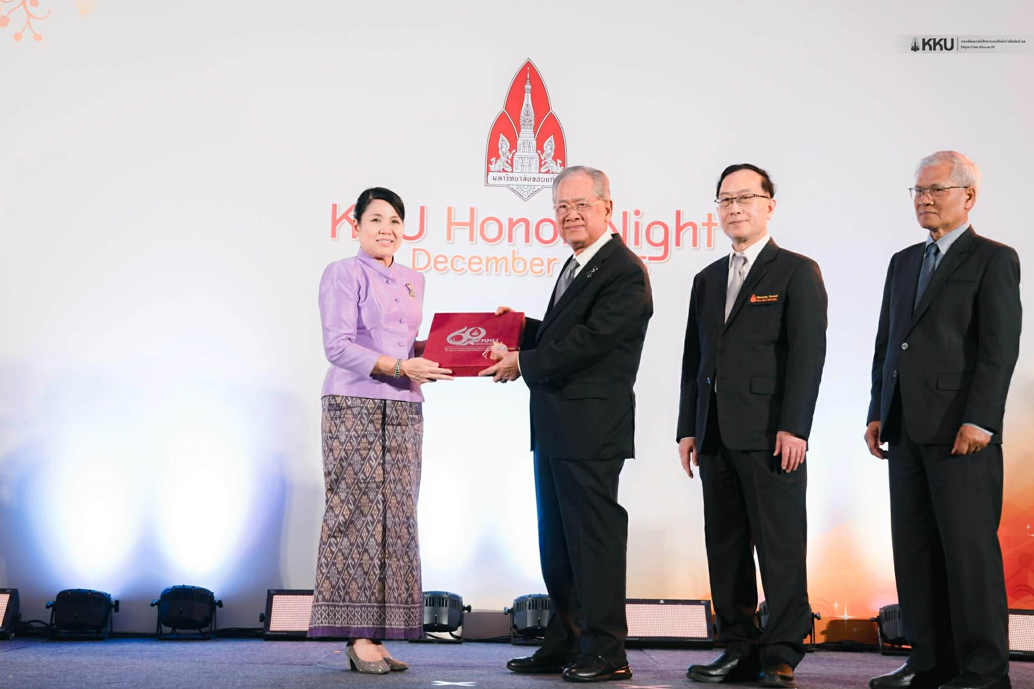 รศ.นพ.ชาญชัย พานทองวิริยะกุล อธิการบดีมหาวิทยาลัยขอนแก่น เปิดเผยถึงความสำคัญของการจัดงานว่า “วันนี้เราทุกคนมาร่วมเฉลิมฉลองความสำเร็จอันโดดเด่นของบุคคลและองค์กรที่ได้สร้างคุณูปการอันสำคัญให้กับมหาวิทยาลัยขอนแก่น ชุมชน และสังคม มหาวิทยาลัยขอนแก่นมอบรางวัลอันทรงเกียรติหลายรางวัลเพื่อยกย่องเชิดชูเกียรติสำหรับความทุ่มเทในการสร้างผลงานของคณาจารย์ บุคลากร และนักศึกษา รวมถึงยกย่องและขอบคุณบุคคลหรือองค์กรที่ทำงานอย่างไม่รู้จักเหน็ดเหนื่อยร่วมกับชาวมหาวิทยาลัยขอนแก่น”