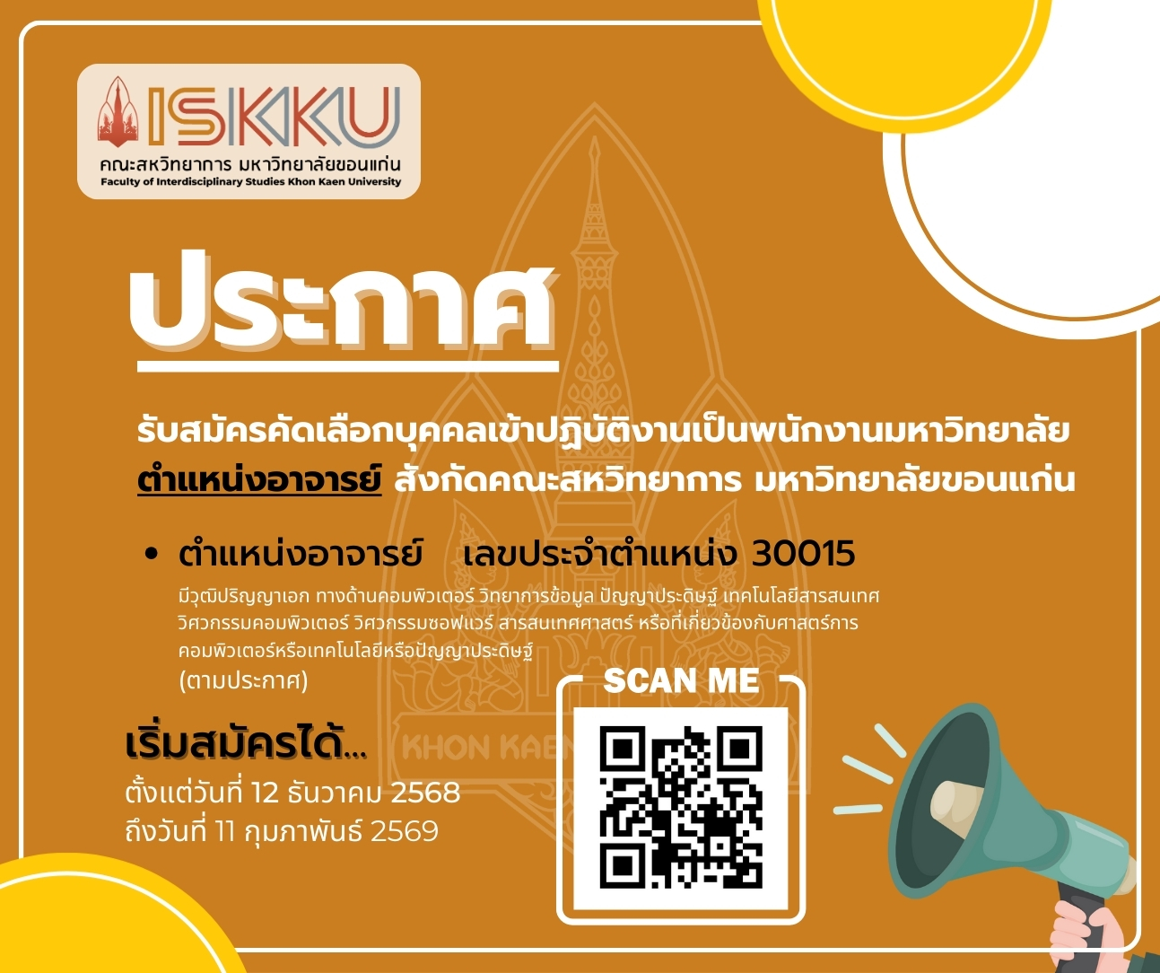 ประกาศคณะสหวิทยาการ ฉบับที่ 144/2568 เปิดรับสมัครคัดเลือกบุคคลเพื่อจ้างเหมาบริการ ตำแหน่งเจ้าหน้าที่