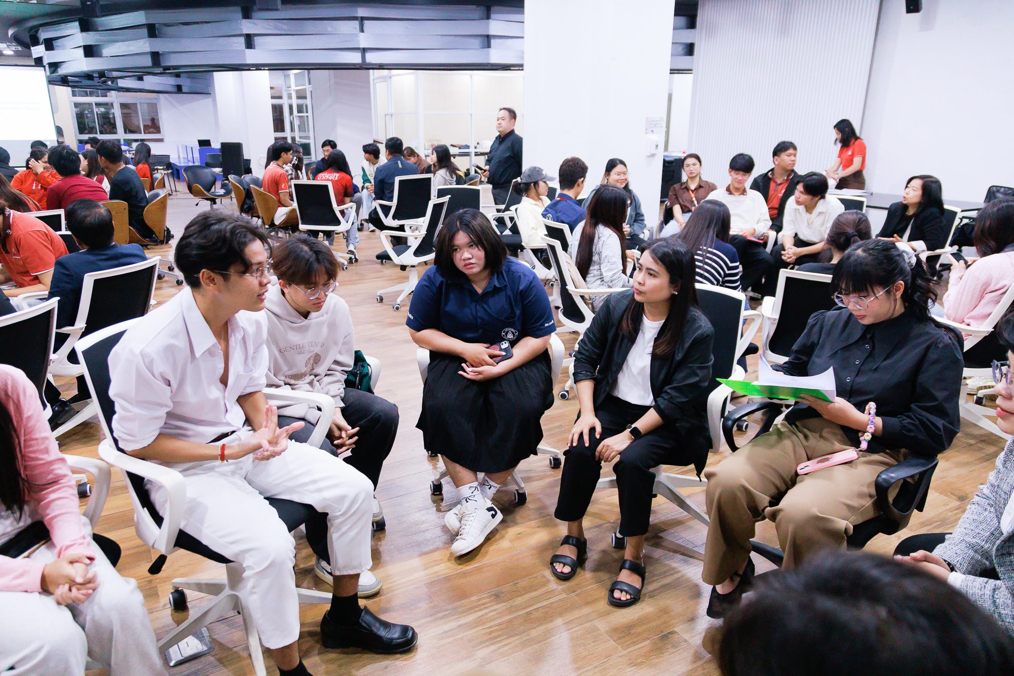 ในการจัดกิจกรรมครั้งนี้ได้รับเกียรติจาก ผู้ช่วยศาสตราจารย์ ดร.อนุชา โสมาบุตร ผู้ช่วยอธิการบดีฝ่ายการศึกษา และ ผู้ช่วยศาสตราจารย์ ดร.ศักดิ์สุริยา ไตรยราช รองคณบดีฝ่ายบริหารทรัพยากรบุคคลและนวัตกรรมดิจิทัล วิทยาลัยนานาชาติ เป็นวิทยากรดำเนินกิจกรรมในหัวข้อ ISKKU Grill & Talk (Phase2) "เสียงของคุณ... คืออนาคตของคณะของเรา"