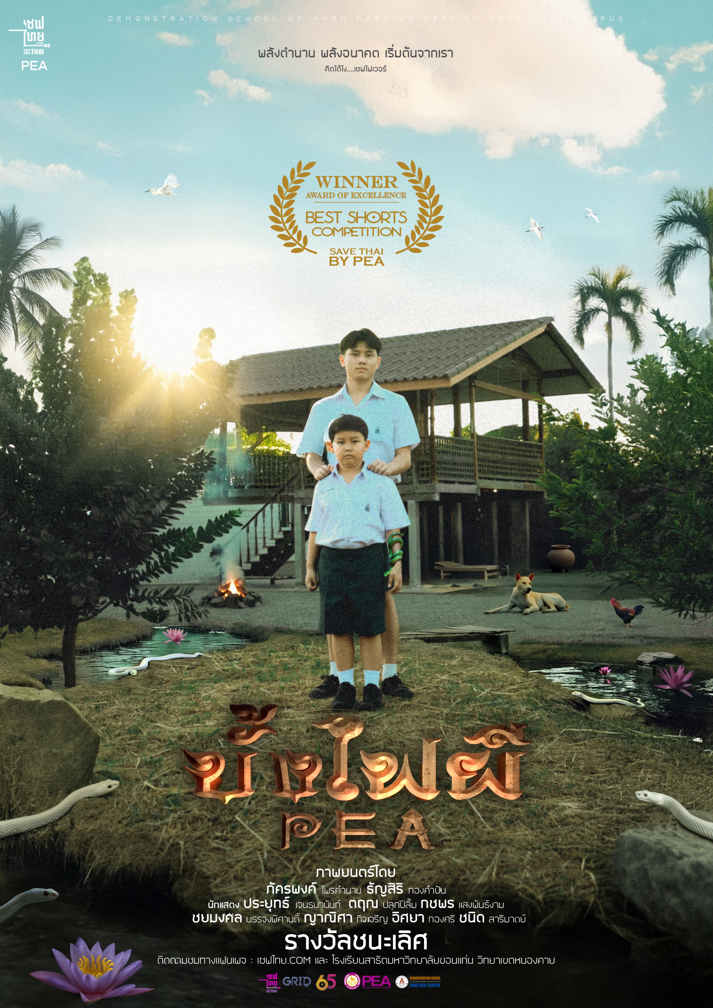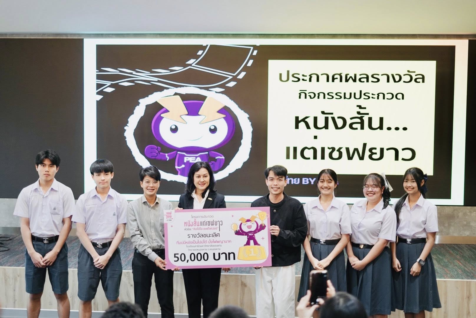 วันที่ 12 มกราคม 2569 ณ ณ ห้องสุโขทัย อาคาร 1 ชั้น 7 การไฟฟ้าส่วนภูมิภาค (สำนักงานใหญ่) จังหวัดกรุงเทพมหานคร อาจารย์ภัครพงค์ ไพรคำนาม และ อาจารย์ธัญสิริ ทองคำปัน พร้อมนักเรียน โรงเรียนสาธิตมหาวิทยาลัยขอนแก่น วิทยาเขตหนองคาย เข้ารับรางวัลชนะเลิศ ในชื่อผลงาน "บั้งไฟผี PEA" การประกวดหนังสั้นแต่เซฟยาว ในหัวข้อ “คิดได้ไง เซฟไฟเว่อร์” ซึ่งเป็น 1 ในผลงานที่ส่งประกวดทั้งหมด 245 เรื่องจากทั่วประเทศ จัดโดย เซฟไทย โครงการภายใต้การดูแลและควบคุมของการไฟฟ้าส่วนภูมิภาค (PEA) เพื่อสร้างการรับรู้ด้านการใช้พลังงานอย่างสร้างสรรค์ผ่านมุมมองคนรุ่นใหม่ โดยได้รับเกียรติจาก คุณนวลอนงค์ คำใสแสง ผู้อำนวยการฝ่ายบริหารความยั่งยืนและสื่อสารองค์กร เป็นผู้แทนในการมอบรางวัล