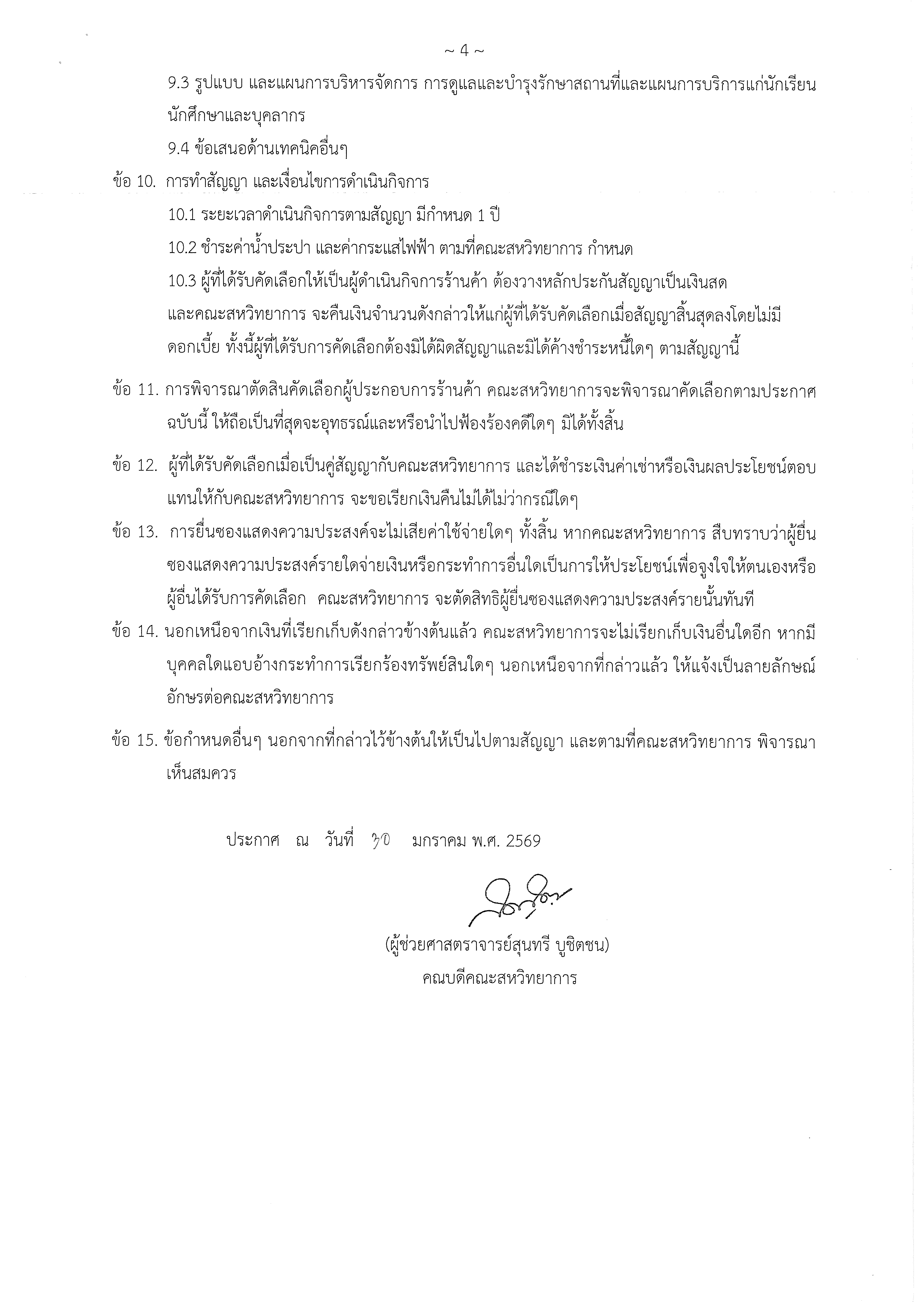 ประกาศคณะสหวิทยาการ ฉบับที่ 74/2568 เรื่อง ผลการคัดเลือกผู้ประกอบการประเภทร้านค้าเพื่อจำหน่ายอาหาร เ