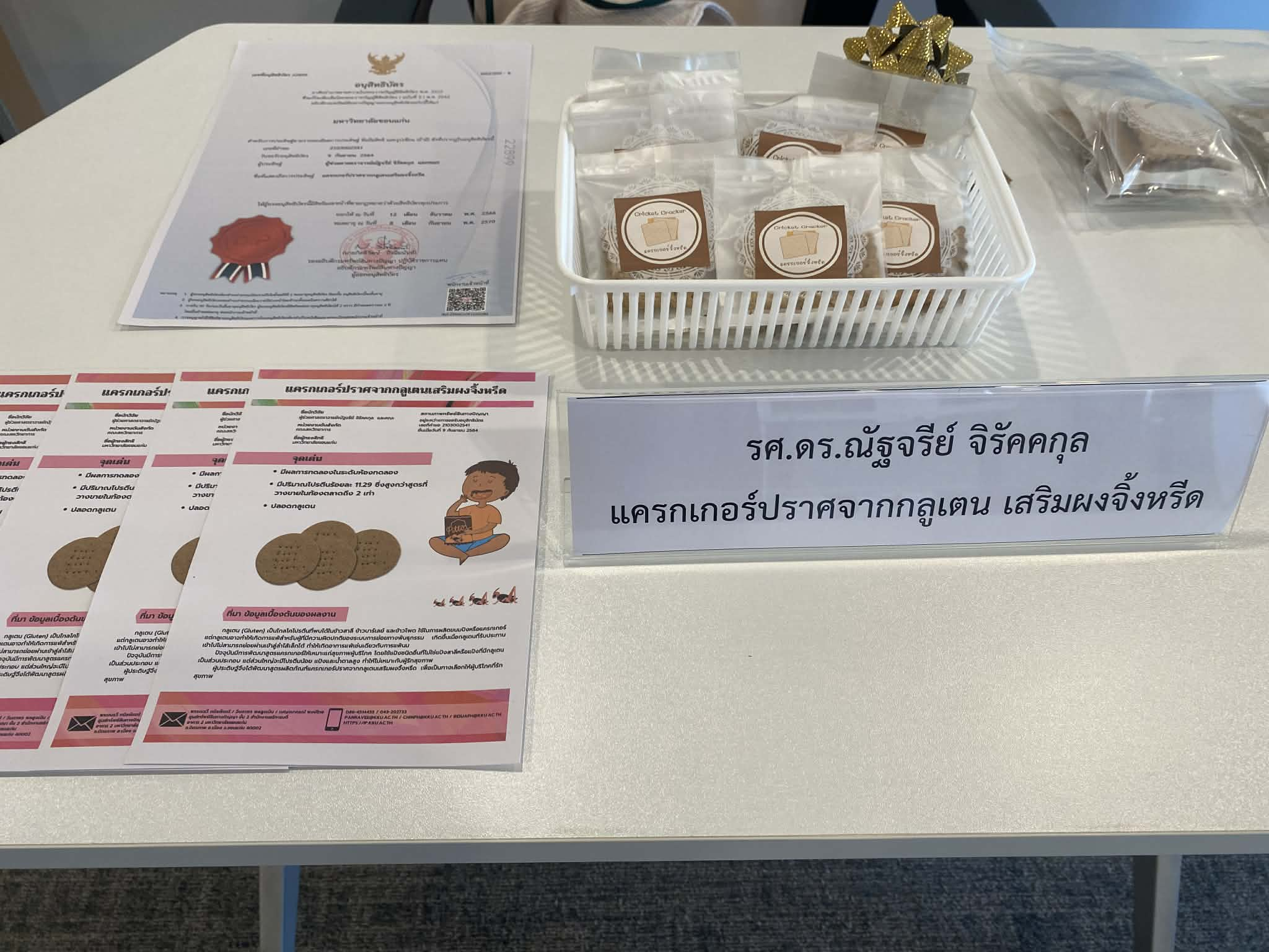 ภายในงานได้มีการนำเสนอนวัตกรรมด้าน Food Tech ที่น่าจับตามอง โดย รองศาสตราจารย์ ดร.ณัฐจรีย์ จิรัคคกุล อาจารย์สาขาวิทยาศาสตร์ประยุกต์ คณะสหวิทยาการ มหาวิทยาลัยขอนแก่น ได้นำเสนอผลงานวิจัย "แครกเกอร์ปราศจากกลูเตนเสริมผงจิ้งหรีด" ซึ่งเป็นโปรตีนทางเลือก และอาหารฟังก์ชัน ที่ตอบโจทย์เทรนด์สุขภาพได้อย่างลงตัว
