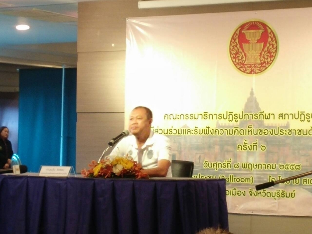การจัดสัมมนาดังกล่าวจัดขึ้นเพื่อเปิดโอกาสให้หน่วยงานที่เกี่ยวข้องและประชาชนทุกภาคส่วน มีส่วนร่วมรับฟังและแสดงความคิดเห็นการปฏิรูปด้านกีฬาของประเทศให้เกิดประสิทธิภาพยิ่งขึ้น ทั้งเป็นเวทีแลกเปลี่ยนสนทนาและแสดงความเห็นเกี่ยวกับการปฏิรูปการกีฬาเพื่อเป็นการหาข้อมูลข้อเท็จจริงเกี่ยวกับประเด็นปฏิรูปการกีฬา และแก้ไขกฎหมายที่เกี่ยวข้อง เพื่อนำไปสู่เป้าหมายพัฒนาการกีฬาในอนาคต โดยมีส่วนราชการ สมาคมกีฬา สโมสรกีฬา ชมรมกีฬา ภาคเอกชน องค์กรปกครองส่วนท้องถิ่น และประชาชนจากหลายจังหวัดในเขตภาคอีสานตอนล่าง เข้าร่วมรับฟังและแสดงความคิดเห็นจำนวนกว่า 300 คนทั้งนี้ การสัมมนารับฟังความคิดเห็นจากประชาชน“ การมีส่วนร่วมและรับฟังความคิดเห็นของประชาชนด้านปฏิรูปการกีฬา ” ครั้งที่ 7 จะจัดขึ้นในวันที่ 22 พฤษภาคม 2558 ที่ จ.เชียงใหม่ ครั้งที่ 8 วันที่ 5 มิถุนายน 2558 ที่ จ.สงขลา และครั้งที่ 9 วันที่ 19 มิถุนายน 2558 ที่ จ.สมุทรสาคร