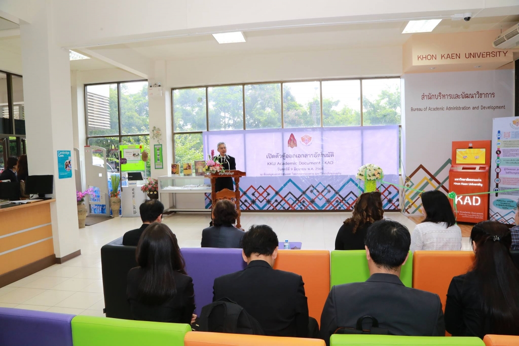 อาจารย์ชาติภร เมืองโครต มุงคุณแสน ผู้ช่วยอธิการบดีวิทยาเขตหนองคาย กล่าวว่า รู้สึกยินดีเป็นอย่างยิ่งที่ทางสำนักบริหารและพัฒนาวิชาการ มหาวิทยาลัยขอนแก่น ได้จัดทำโครงการผลิตตู้เอกสารสำคัญทางการศึกษาอัตโนมัติ หรือ KAD ซึ่งเป็นตู้สำหรับออกเอกสารสำคัญทางการศึกษา เช่น หนังสือรับรองการเป็นนักศึกษา หนังสือรับรองสำเร็จการศึกษา และใบแสดงผลการศึกษา ซึ่งทำให้นักศึกษาวิทยาเขตหนองคายมีช่องทางในการรับบริการที่สะดวก รวดเร็ว ในการรับเอกสารเป็นอย่างยิ่ง