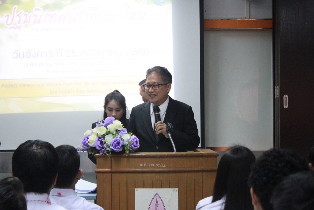 รองศาสตราจารย์ ดร.อภิรัตน์ เพ็ชรศิริ กล่าวว่า โครงการปฐมนิเทศนักศึกษาใหม่ คณะสังคมศาสตร์บูรณาการ ประจำปีการศึกษา ๒๕๖๐ เป็นการแนะนำเรื่องต่างๆ ในการเข้ามาเป็นนักศึกษาใหม่ในสถาบันแห่งนี้ การปฐมนิเทศนักศึกษาใหม่เป็นกิจกรรมหนึ่งที่จะทำให้นักศึกษา ที่เข้ามาศึกษาจะได้รับข้อมูลในด้านการเรียนการสอน พร้อมทั้งการปรับตัวในด้านการเรียนได้อย่างเหมาะสม ซึ่งจะทำให้นักศึกษาใหม่ได้มีการเรียนรู้การปรับตัวในด้านการเรียนการสอนในระดับอุดมศึกษา ได้รู้ถึงรายละเอียดในด้านการเรียนการสอนมากขึ้น